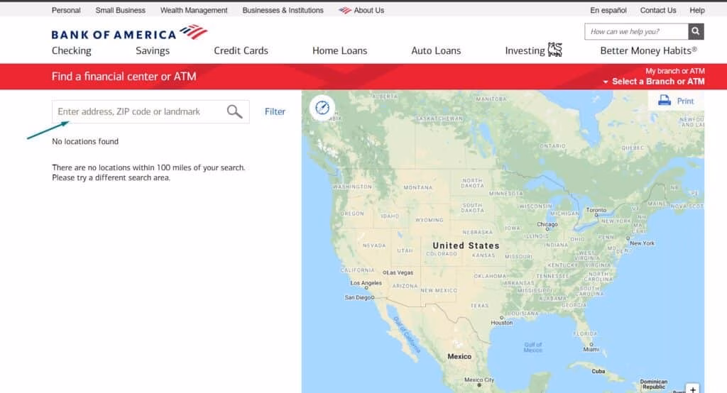 Usar el localizador oficial de Bank of America (web y app)