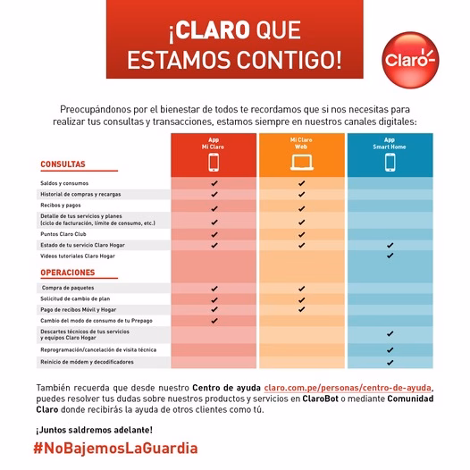 - Recuerda que con la App Mi Claro puedes gestionar trámites instantáneamente y así evitar llamadas y esperas.