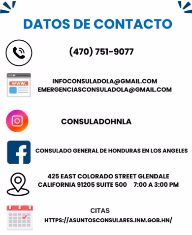 - También puedes encontrar información sobre horarios y la dirección en su perfil de Instagram | Consulado General de Honduras en Los Angeles.