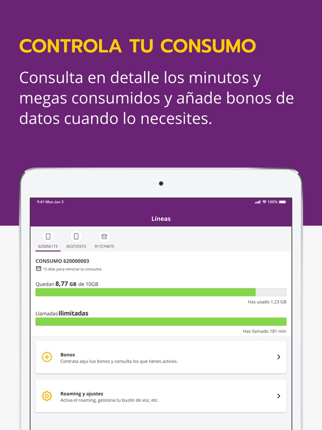 - Consulta el consumo en tiempo real con la app o marcando *113#.